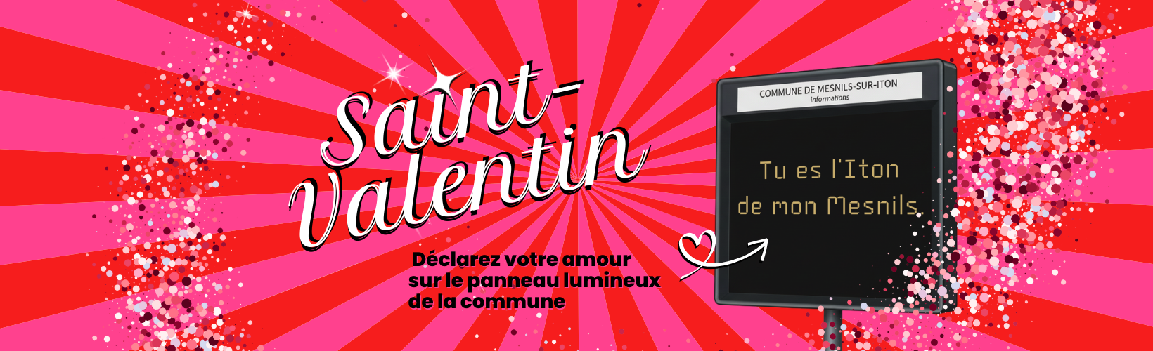 Envoyez-nous vos mots d’amour (120 caractères maximum, espaces compris) à Cette adresse e-mail est protégée contre les robots spammeurs. Vous devez activer le JavaScript pour la visualiser. avant le 12 février 2026.